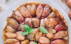 Quand les échalotes sont caramélisées versez le contenu de la poêle dans la tartière et recouvrir avec la pâte .